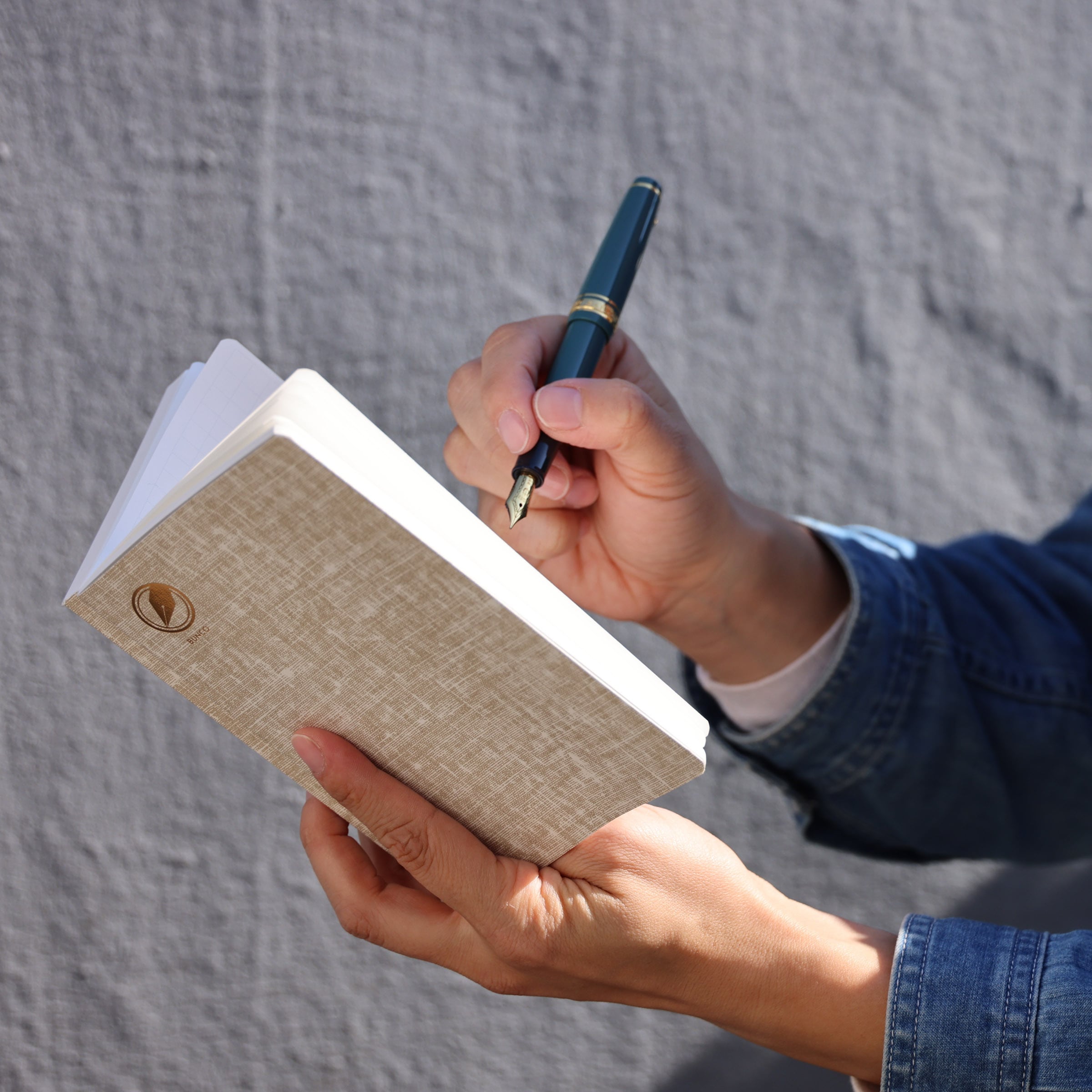 片手におさまるコンパクトなサイズ感なので携帯性が良く、お気に入りの万年筆と一緒にバッグに入れて、いつでもサッと取り出して書ける軽やかなノートです。