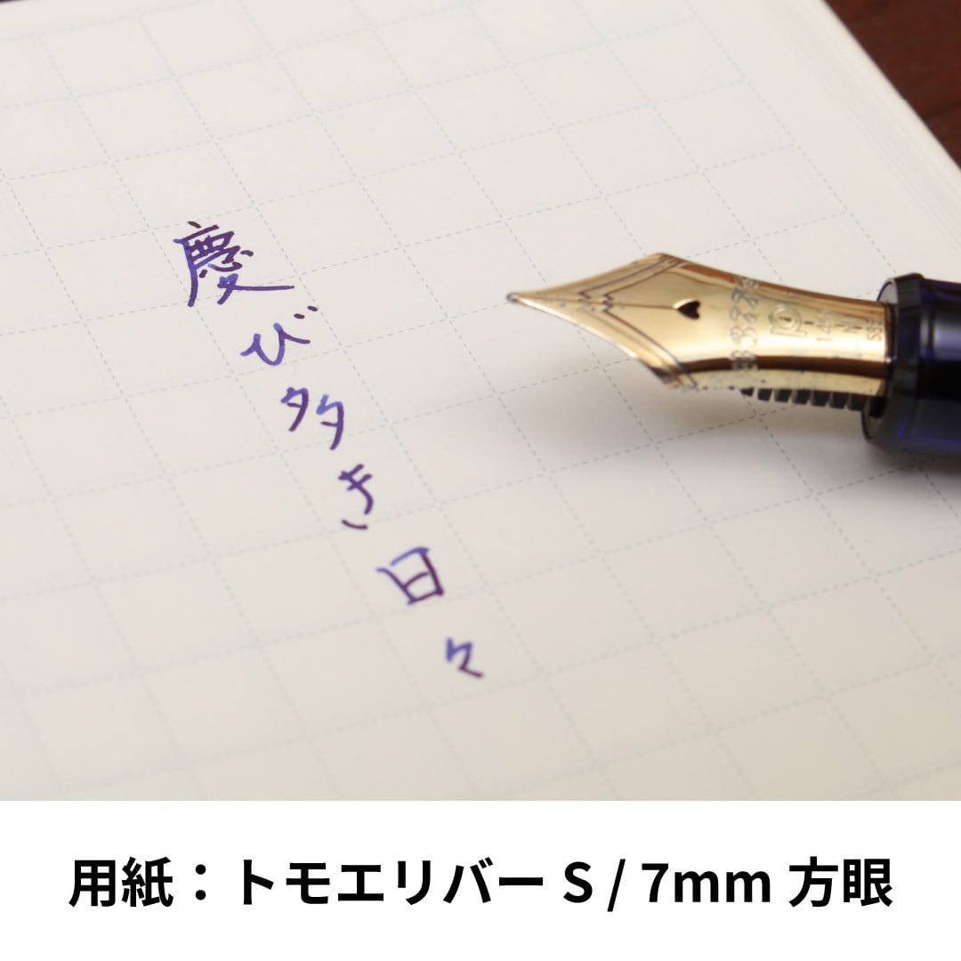 するするとなめらかな書き心地、にじみ・裏抜けが少なく万年筆との相性が良い用紙「トモエリバー」を使用。カラーインキも美しく発色します。