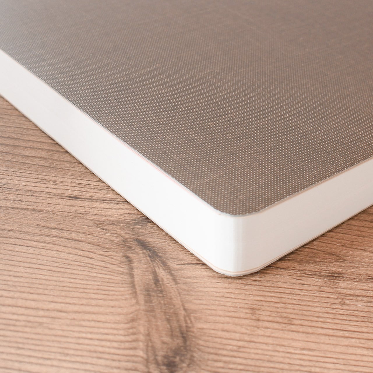 長期使用での劣化を抑えるため、学術書などに使われる事が多い素材で表紙を仕上げています。余分な装飾のないシンプルなブラウンの表紙は高級感と重厚感があります。